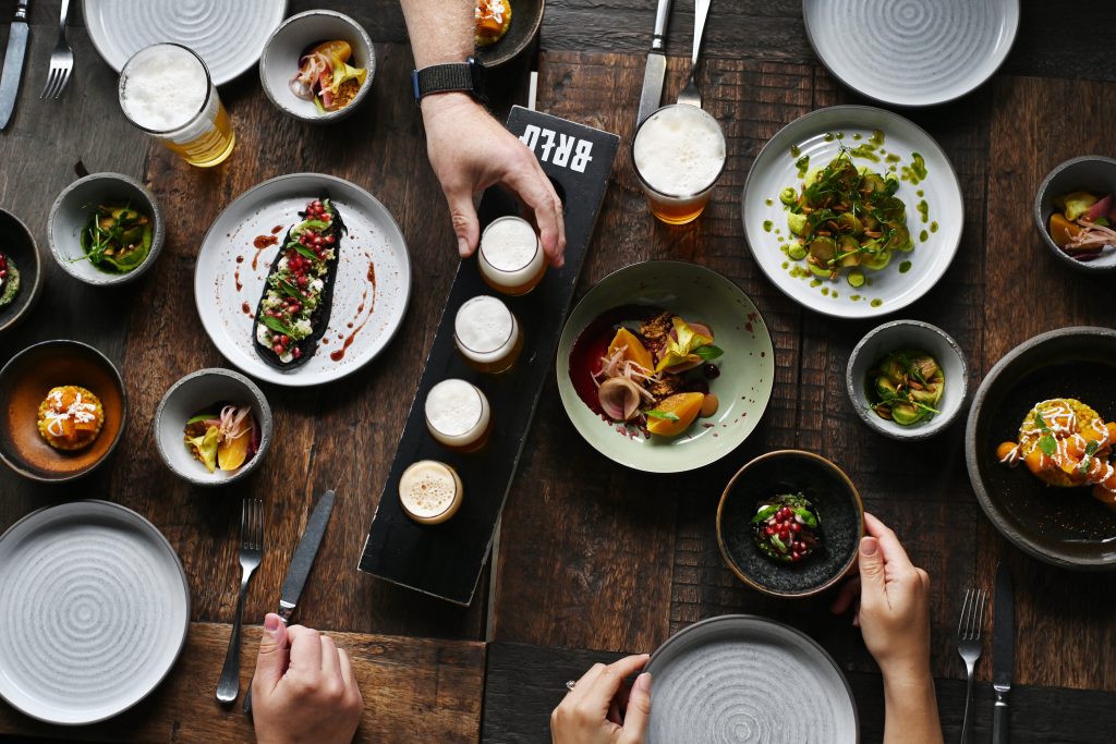 BRLO denkt die traditionelle Brauhausküche neu. Gemüse wird zum Star, während Fleisch als Beilage dient. Auf den Speisekarten findet man kreative Gerichte, die perfekt mit den BRLO-Bieren harmonieren. Dabei setzt BRLO auf frische Zutaten aus der Region und bietet jedes Gericht als Sharing Plate an. So können Gäste gemeinsam neue Geschmackserlebnisse entdecken und sich von der Vielfalt der Gerichte und Biere begeistern lassen.