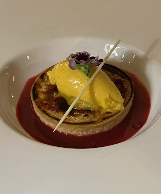 Ein perfektes Abendessen findet seinen krönenden Abschluss mit einem Dessert. Die „Crème Brûlée Tarte“ mit Mango und Himbeercoulis hat uns vollkommen verzaubert. Der cremige, zarte Kern der Tarte verschmilzt auf wunderbare Weise mit der süßen Mango und dem fruchtigen Coulis – eine wahre Geschmacksexplosion, die den Gaumen auf eine verführerische Reise schickt. Dieses Dessert hat uns so begeistert, dass wir allein deswegen gerne wiederkommen würden.