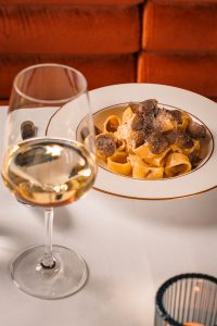 Die Trüffelpasta: Cremige Sauce legt sich um die Pasta, und frischer Trüffel bringt nussige, erdige und herzhafte Aromen mit, die auf der Zunge zergehen.