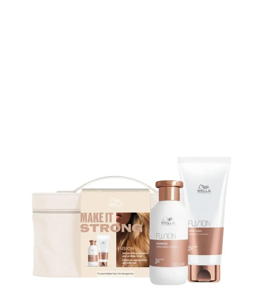 Das Fusion Geschenkset stärkt Haar, das zu Haarbruch neigt, und verleiht ihm neue Widerstandskraft. Die Kombination aus Shampoo und Conditioner pflegt von der Wurzel bis in die Spitzen, erleichtert das Kämmen und hinterlässt ein spürbar glattes, geschmeidiges Ergebnis. Für alle, die ihrem Haar ein sichtbares Upgrade an Vitalität und Kraft schenken möchten. Wella, ca. 43,99 Euro.