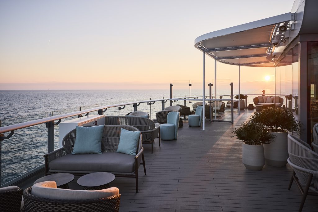 Das X-Sundeck lädt zu entspannten Momenten ein. Helle Farben, bequeme Sitzmöglichkeiten und ein atemberaubender Blick auf das Meer schaffen eine Atmosphäre der Ruhe und Erholung, in der man sofort den Alltag vergisst. Hier kann man abschalten, tief durchatmen und neue Energie tanken.
