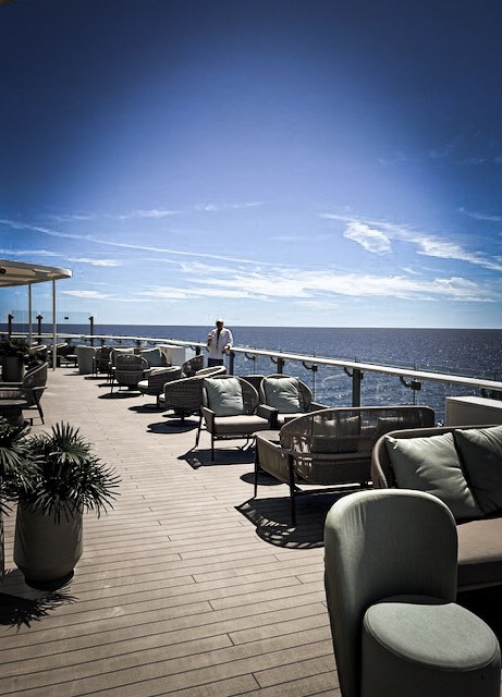 Die X-Lounges haben uns besonders beeindruckt. Große, helle Rückzugsorte, in denen man die Seele baumeln lassen kann. Überall gab es gemütliche Plätze, von denen man das Meer beobachten und dabei einen Kaffee oder ein Glas Champagner genießen konnte. Der Service war aufmerksam, charmant und unaufdringlich – einfach perfekt, um abzuschalten und den Moment zu genießen.