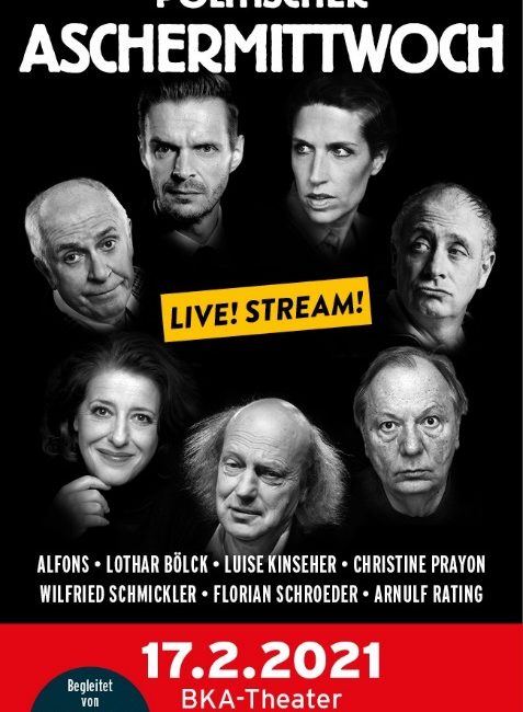 Vor dem ersten großen Lockdown, war der Politische Aschermittwoch eine der letzten großen Veranstaltungen in Berlin. Und weil öffentliche Veranstaltungen in 2021 leider noch nicht möglich sind, wird das kabarettistische Gipfeltreffen mit Arnulf Rating und seinen Gästen in diesem Jahr live aus der Berliner Kabarett Anstalt gestreamt. Tag der...